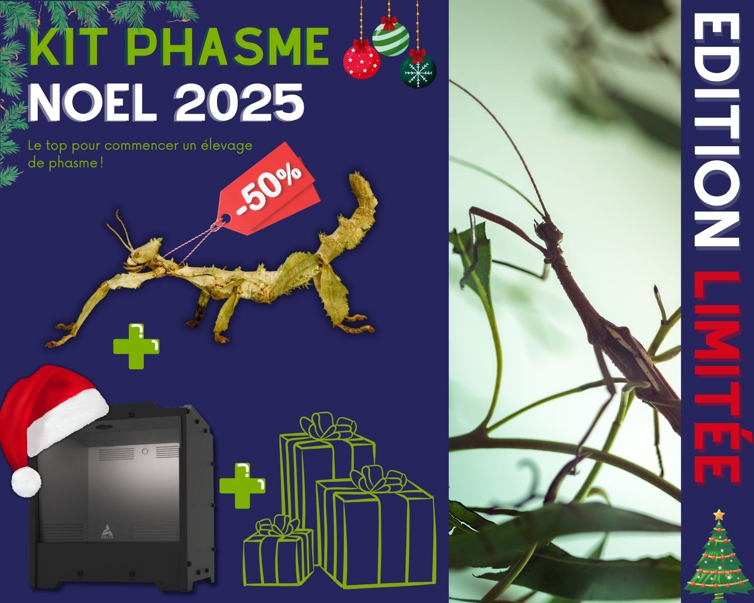 No es fácil orientarse cuando se quiere dar placer con los insectos. Este kit contiene todo lo necesario para iniciar una cría de fásmidos. El vivario, el material, así como una pequeña guía para acompañar al criador.