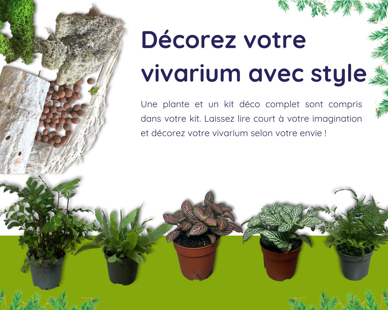 Kit déco naturel + substrat + éléments décoratifs, pour recréer un environnement réaliste et esthétique.