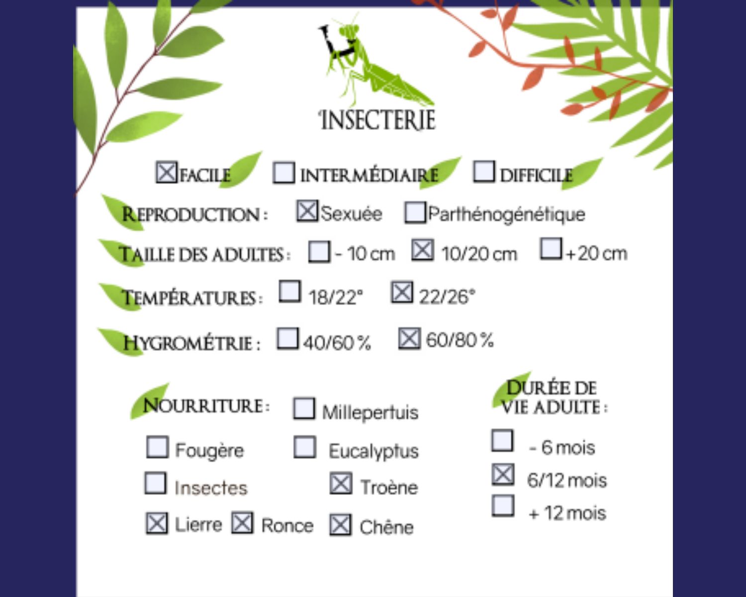 Ficha de reproducción de Phasma - Trachyaretaon carmelae